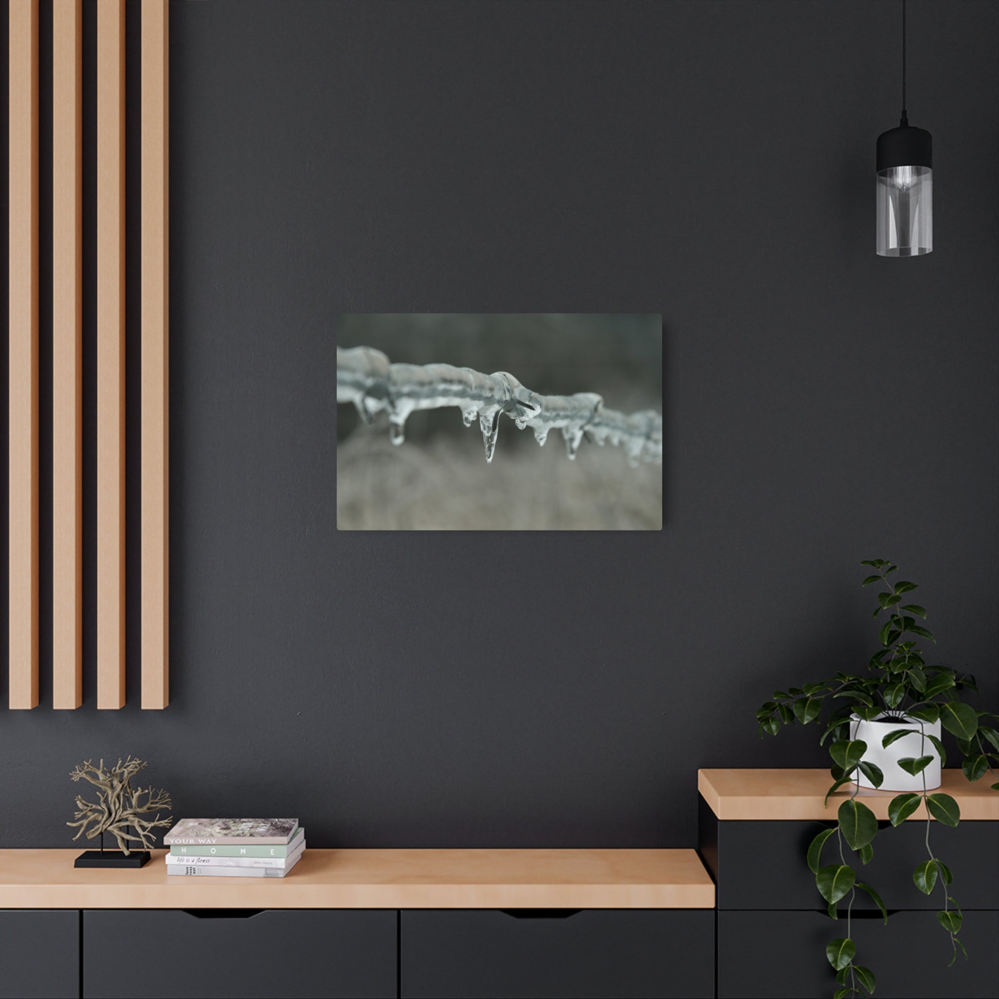 Metal Wall Art, Barbed Wire Fence Wrapped In Ice